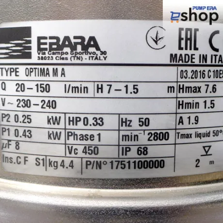 ΄Υποβρύχια αντλία αποστράγγισης κατασκευασμένη από ανοξείδωτο χάλυβα AISI 304.