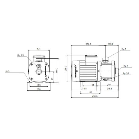Κεφαλή αντλίας, βάση και υπόλοιπα μέρη που έρχονται σε επαφή με το νερό από ανοξείδωτο χάλυβα AISI 304 (1.4301)
