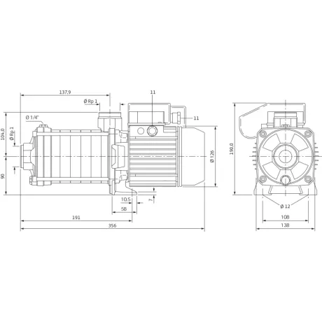 Πολυβάθμια, οριζόντια, φυγοκεντρική αντλία υψηλής πίεσης και κανονικής αναρρόφησης, τύπου μπλοκ με οριζόντιο στόμιο αναρρόφησης και κατακόρυφο στόμιο κατάθλιψης.
