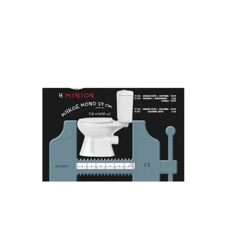 Λεκάνη τουαλέτας Minion της εταιρείας Huida, με καζανάκι. Τοποθετείται στο δάπεδο και είναι ο πιο συνηθισμένος τύπος λεκάνης.Είναι χαμηλής πίεσης, που σημαίνει η λεκάνη και το καζανάκι πρέπει να εφάπτονται και να δημιουργούν ένα ενιαίο σύνολο. Είναι σημαντικό το καζανάκι να ακουμπά στον τοίχο, καθώς σε αντίθετη περίπτωση υπάρχει πιθανότητα να σπάσει.