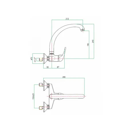 Αναμεικτική Μπαταρία Κουζίνας Fiore (ITALY), επιτοίχια με καμπύλο ράμφος.