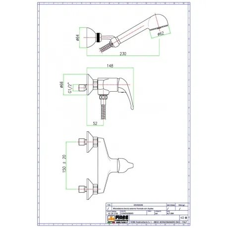 Αναμεικτική Μπαταρία Λουτρού Fiore (ITALY), με καταιονηστήρα χειρός.