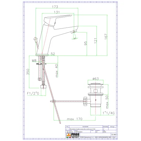 Αναμεικτική Μπαταρία Νιπτήρος Ψηλή Fiore (ITALY) με αυτόματη βαλβίδα 1 1/4''