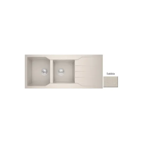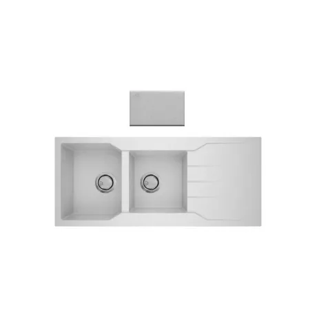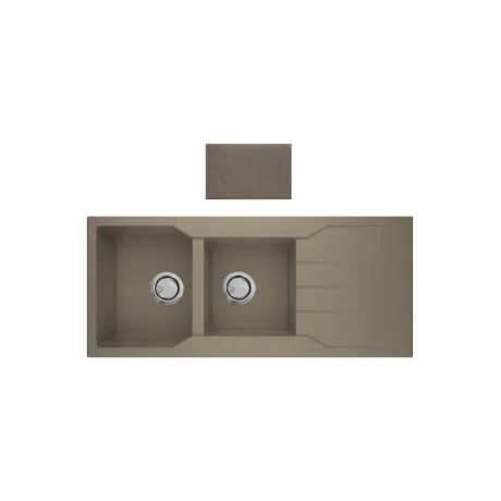 Νεροχύτης κουζίνας από φυσικό ορυκτό γρανίτη & συνθετικές ρητίνες. Εργονομικός αντιστρεφόμενος σχεδιασμός με 2 ανόμοιες γούρνες, επιφάνεια αποστράγγισης & άνετο περιθώριο για επιπλέον τοποθέτηση dispenser. Εξωτερικές διαστάσεις 116cm Χ 50cm & μέγιστο βάθος γούρνας 20cm. Εντοιχίζεται σε ερμάριο 80cm και συνοδεύεται από βαλβίδες αποχέτευσης με σύστημα υπερχείλισης & τα αντίστοιχα σιφόν.