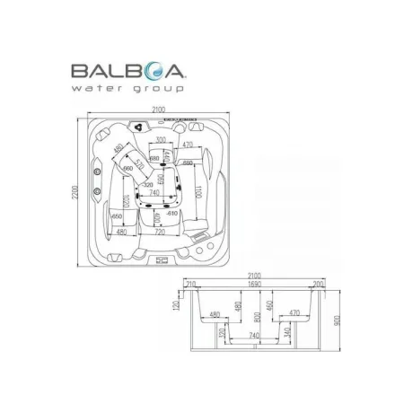 • Μπανιέρα spa υδρομασάζ με εσωτερικό χρώμα Α008 χωρητικότητας τριών έως πέντε ατόμων και περιμετρική ποδιά από συνθετικό ξύλο με καλυμα