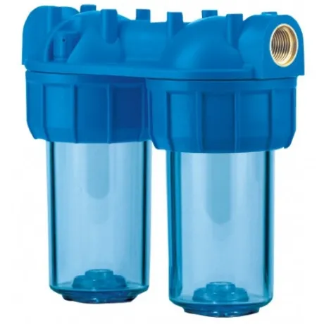 Διπλή συσκευή φίλτρου νερού με ίσια παροχή.