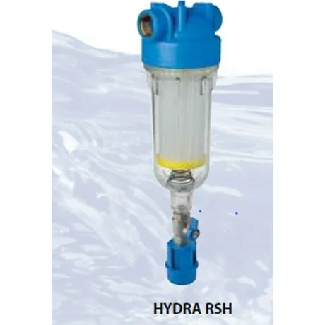 Αυτοκαθαριζόμενο Φιλτρο κεντρικής παροχής Τοποθετείται στην κεντρική παροχή νερού (στα ρολόγια). Διαθέτει  ανοξείδωτο  πλέγμα φιλτραρίσματος από  INOX AISI 316. Για να καθαρίσουμε το φίλτρο γυρνάμε τη βαλβίδα, επιτρέποντας στο βρώμικο νερό να τρέξει κάτω. Η κατασκευή γίνεται από μη τοξικά υλικά, κατάλληλα για πόσιμο νερό. Η κεφαλή είναι από ενισχυμένο πολυπροπυλένιο. Θόλος από PET. Φλάντζα O-ring από EPDM. Ορειχάλκινα πάσα σύνδεσης. Αλλαγή φίλτρου κάθε 5 χρόνια.