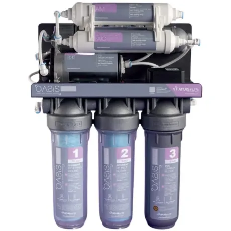 Το φίλτρο νερού αντίστροφης όσμωσης “OASIS SANIC“ PUMP διαθέτει αντιμικροβιακή τεχνολογία εξελιγμένη από την MICROBAN, κατασκευάζεται από την Atlas Fliltri από πιστοποιημένα και υψηλής ποιότητας υλικά. Επεξεργάζεται το νερό σε 6 στάδια και μας φέρνει στο ποτήρι μας καθαρό υγιεινό νερό, ανεξαρτήτως το πόσο δύσκολο νερό μπορεί να έχει να φιλτράρει ακόμα και σε περιοχές με νερό ακατάλληλο για πόση από άλατα, νιτρικά, αρσενικό, μικρόβια, βακτήρια και άλλες βλαβερές ουσίες κ.α. Στην συσκευασία συμπεριλαμβάνει όλα τα φίλτρα και τα εξαρτήματα που χρειάζονται για την εγκατάσταση.