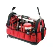 Υφασμάτινη εργαλειοθήκη, λειτουργική και ανθεκτική. Διαθέτει ιμάντα ώμου με μαξιλαράκι και λαβή αλουμινίου με δερμάτινη επένδυση. Με σταθερή βάση αδιάβροχη και ανθεκτική καθώς και ειδικό διαχωριστικό τοίχωμα για τακτοποίηση κατσαβιδιών. Με ειδική θήκη για μεταλλοπρίονο.
