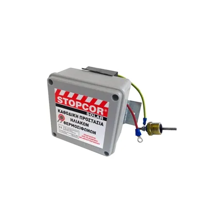 Η επιβαλλόμενη τάση πρέπει να είναι άνω του 1 volt και η ένταση άνω των 10 mA.To STOPCOR είναι ένα ανόδιο για τον ηλιακό θερμοσίφωνα, που τοποθετείται εύκολα, εξωτερικά από την εγκατάσταση.Αντικαθιστά τη ράβδο μαγνησίου ( ανόδιο για τον ηλιακό), που ρυπαίνει το νερό και είναι επιβλαβής στην υγεία.