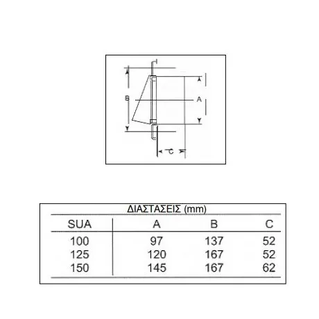 Αντιανεμικό στόμιο Βροχής INOX Sua 125mm