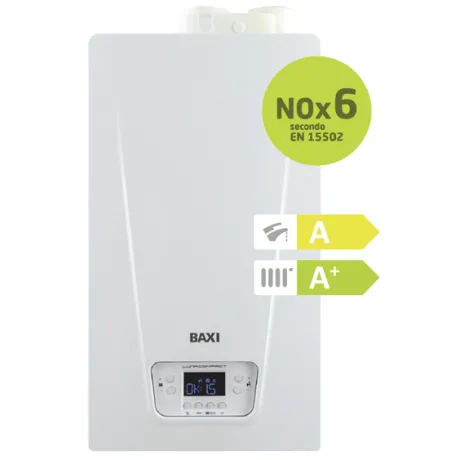 BAXI Luna Compact 24Επιτοίχιος λέβητας αερίου BAXI Luna Compact 24 υψηλής απόδοσης, με ειδική προστασία κατά της βροχής και της υγρασίας (IPxSD), για ατομική θέρμανση και για άμεση παράγωγη ζεστού νερού χρήσης.