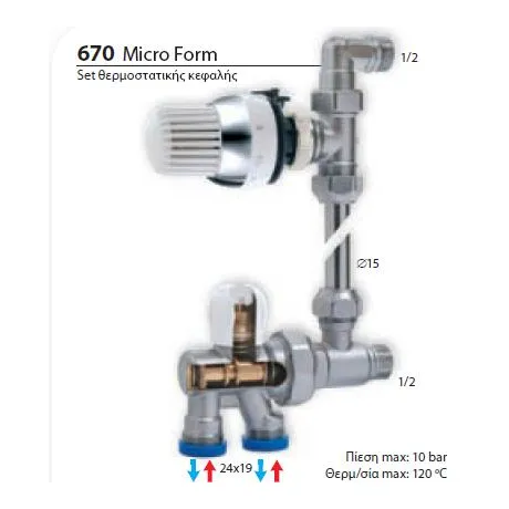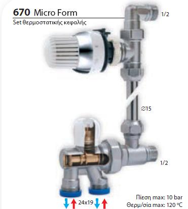 Διακόπτης Brass Form μονοσωληνίου εξωτερικού βρόγχου σπαστός Micro Form 670 θερμοστατικός