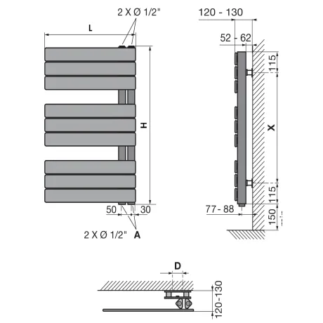 ELA 1104 50/1130/450 Purmo Elato Θερμαντικά σώματα λουτρού δεξίας ή αριστερής σύνδεσης