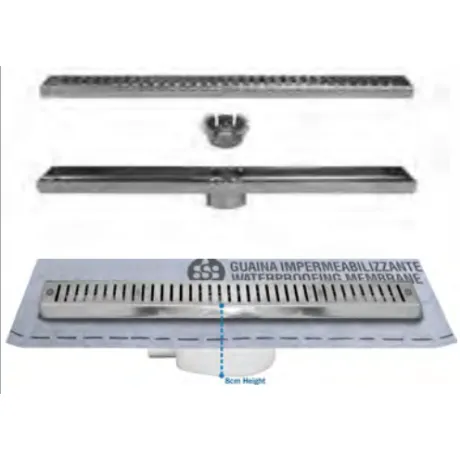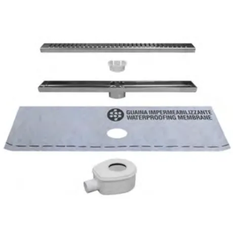 ΚΙΤ - κανάλι, σχάρα, σύστηµα σιφωνιού µε έξοδο Φ40 και υγροµονωτική µεµβράνη 1m2 (προσαρµοσµένη στο σιφώνι).Συνολικό ύψος εγκατάστασης 8cm.